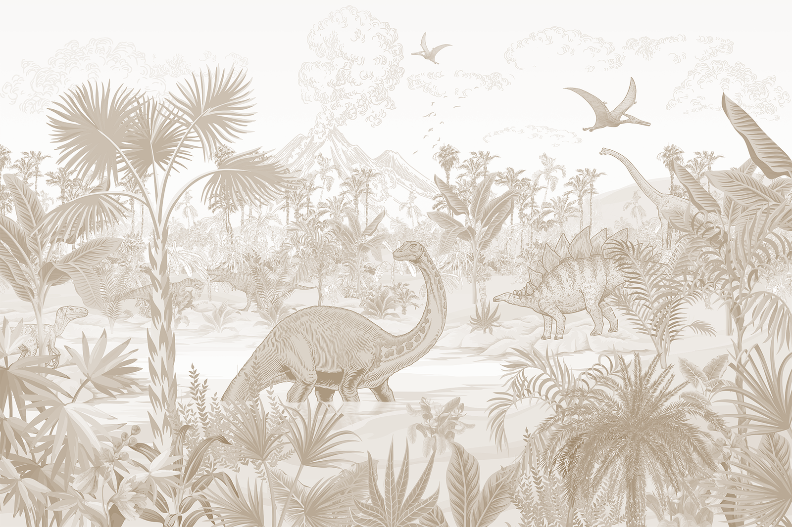 MURAL DINOS SEPIA