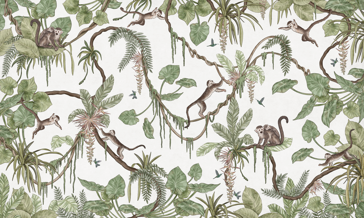 MURAL PLAYFUL MONKEYS- WHITE